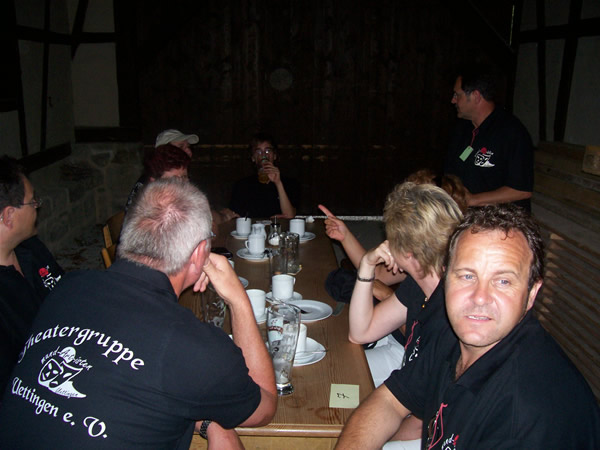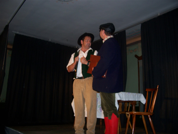 Die Akteure aus Uettingen waren: Frank Endres als der Bauer, Wolfram Geiger als der Geometer, Doris Seufert als Magd und Daniel Martin als Knecht. Gespielt haben alle vier sehr überzeugend. Besonders hervorzuheben ist aber die Leistung von Debutant Daniel, der auf der Bühne stand, als hätte er sein Leben lang nichts anderes gemacht. Dickes, fettes Kompliment.