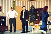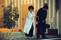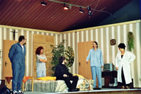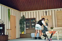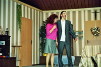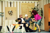 Leo's Mutter Erna (Gabi Hellmann als leicht trottelige, alkoholgschädigte ältere Dame) taucht zu allem Übel auch noch auf und bringt scheinbar alles durcheinander. Im Wandschrank hat sich, unbemerkt von allen, ein Dieb eingenistet - Willi Sattler (Forian Endres als rotzfrecher Einbrecher) gibt sich im Laufe des Abends, als er entdeckt wird, als Leo's Bruder aus, was von allen hingenommen wird, weil sonst das Lügengäude einzustürzen droht.