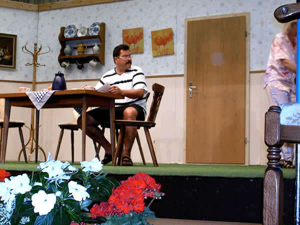 Vater (Ralf Endres) und Mutter (Erika Endres) sitzen am Früstückstisch und diskutieren über eine Zeitungsauschschnitt, in dem ein großer Literaturwettbewerb ankekündigt wird. Das Thema