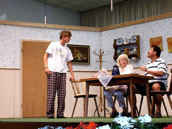 Der Sohnemann (Axel Dürrnagel) kommt verstört hinzu - irgendjemand muss seinen Radiowecker auf volle Lautstärke
