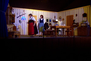 Plötzlich ziehen schwarze Wolken über dem Hof auf.